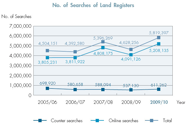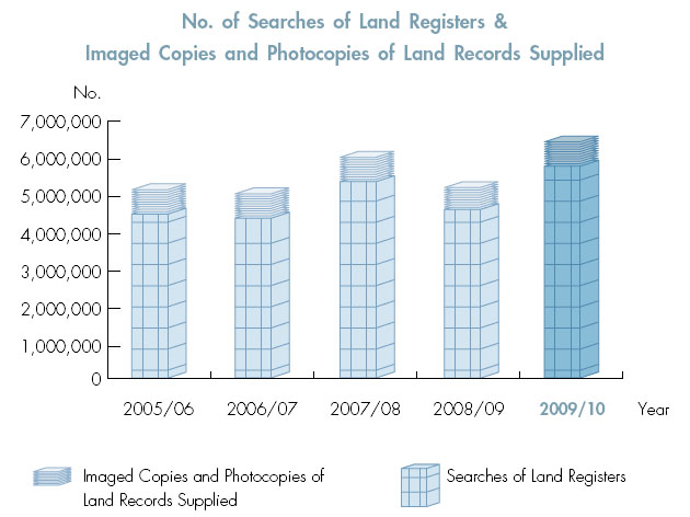 Registration of land documents and search of land registers/land records increased 26.3% and 25.7% respectively as compared with 2008/09.